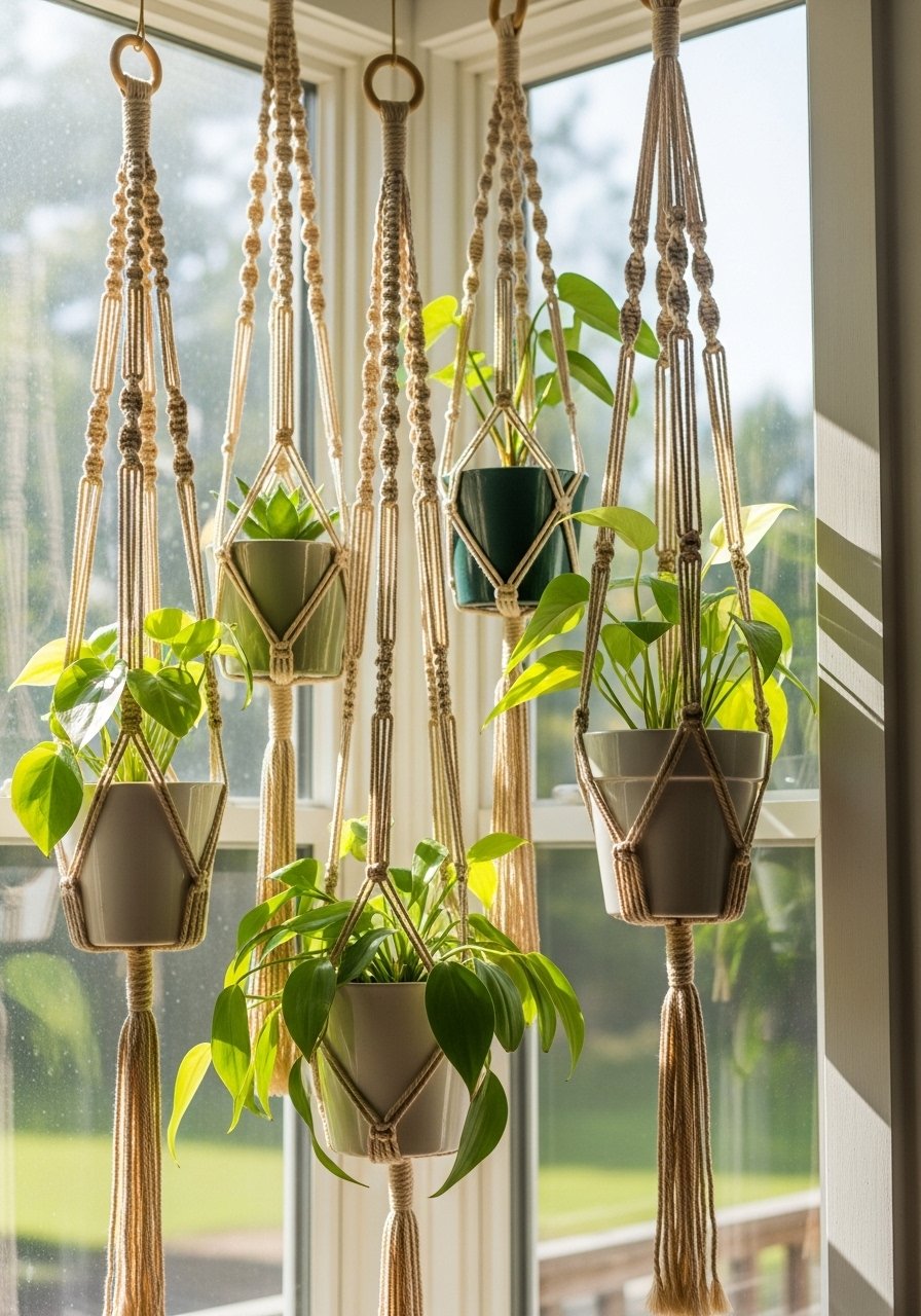 Macramé Plant Hangers for Vertical Greenery in Tiny Spaces