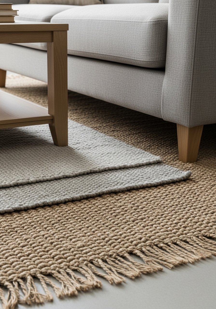 I layer a natural jute rug with a softer 8×10 rug to define zones in an open plan layout. The jute anchors while the wool adds softness underfoot. I recommend an 8×10 jute area rug as a base and a lighter textured rug on top. Avoid tiny rugs that float in the room — they make spaces feel disjointed. Proper rug sizing ties furniture groups together and clarifies traffic flow.