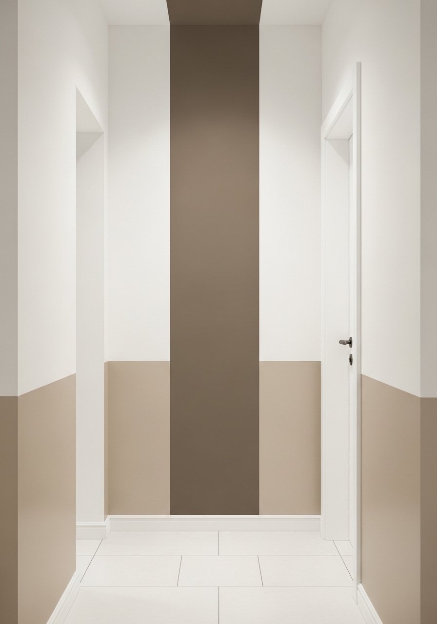 I painted a subtle vertical stripe in warm taupe behind my console to make the ceiling feel higher. It’s an inexpensive trick that reads like custom millwork. Use a color slightly darker than your wall to keep it subtle and modern. Avoid overly bright or thin stripes — they can appear cartoonish. This creates a focused visual lift and pairs nicely with a slim console and a round mirror.