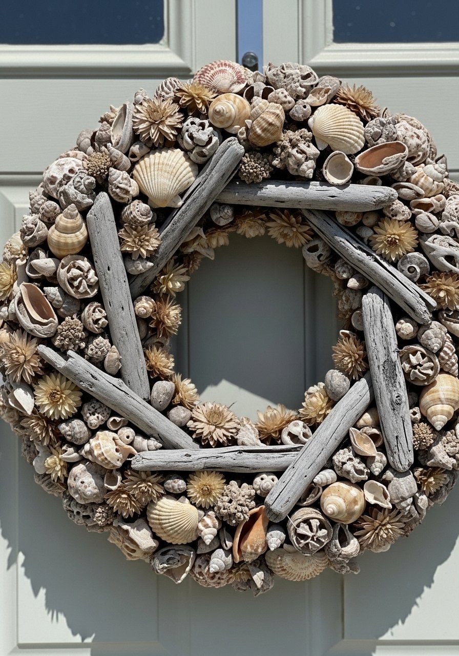 Coastal Shell Wreath for Entryway (Coastal, Inviting)