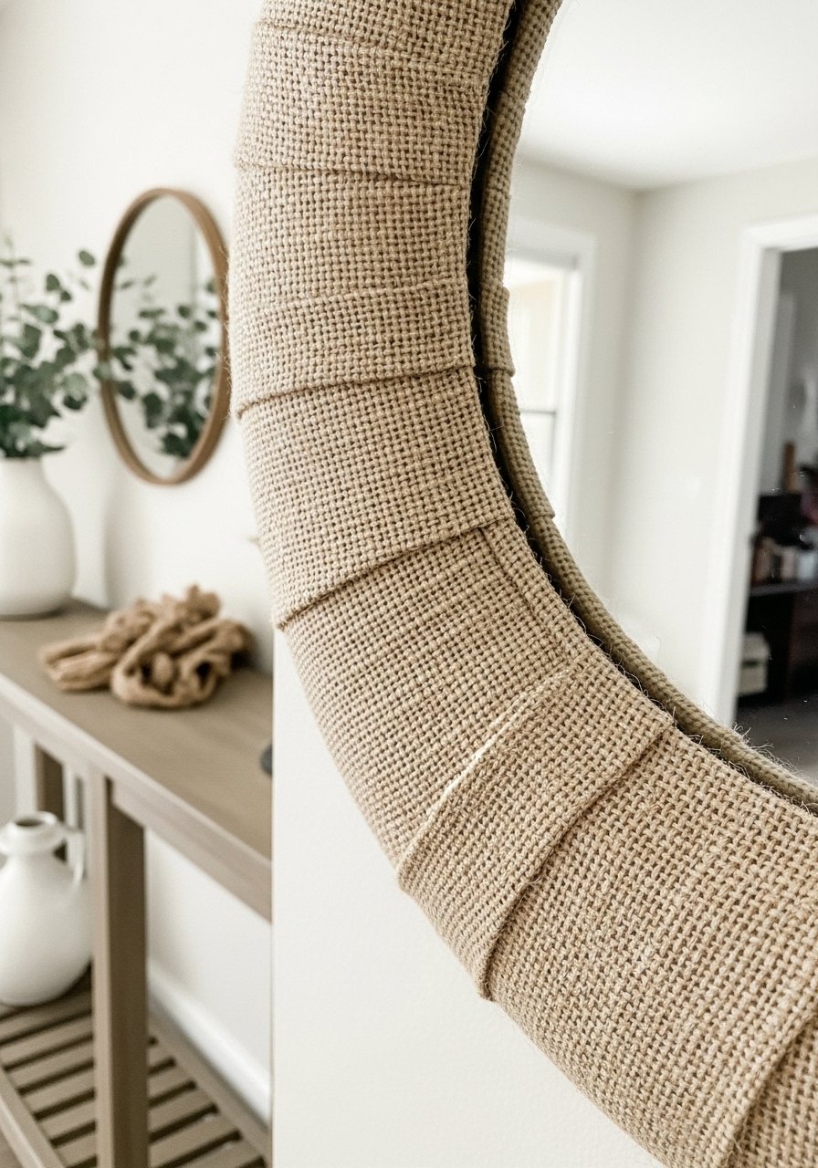 Covering a thrift mirror with textured fabric instantly aged the metal and gave it a gallery-quality finish. I used E6000 to adhere layered strips in a slit-fabric technique for subtle tufting. The trick is tight, even tension; otherwise it looks sloppy. Keep the mirror diameter large enough to reflect light. This method adds timeworn textures and is much cheaper than a designer piece. It's one of those small details that makes rooms feel curated, not cluttered.