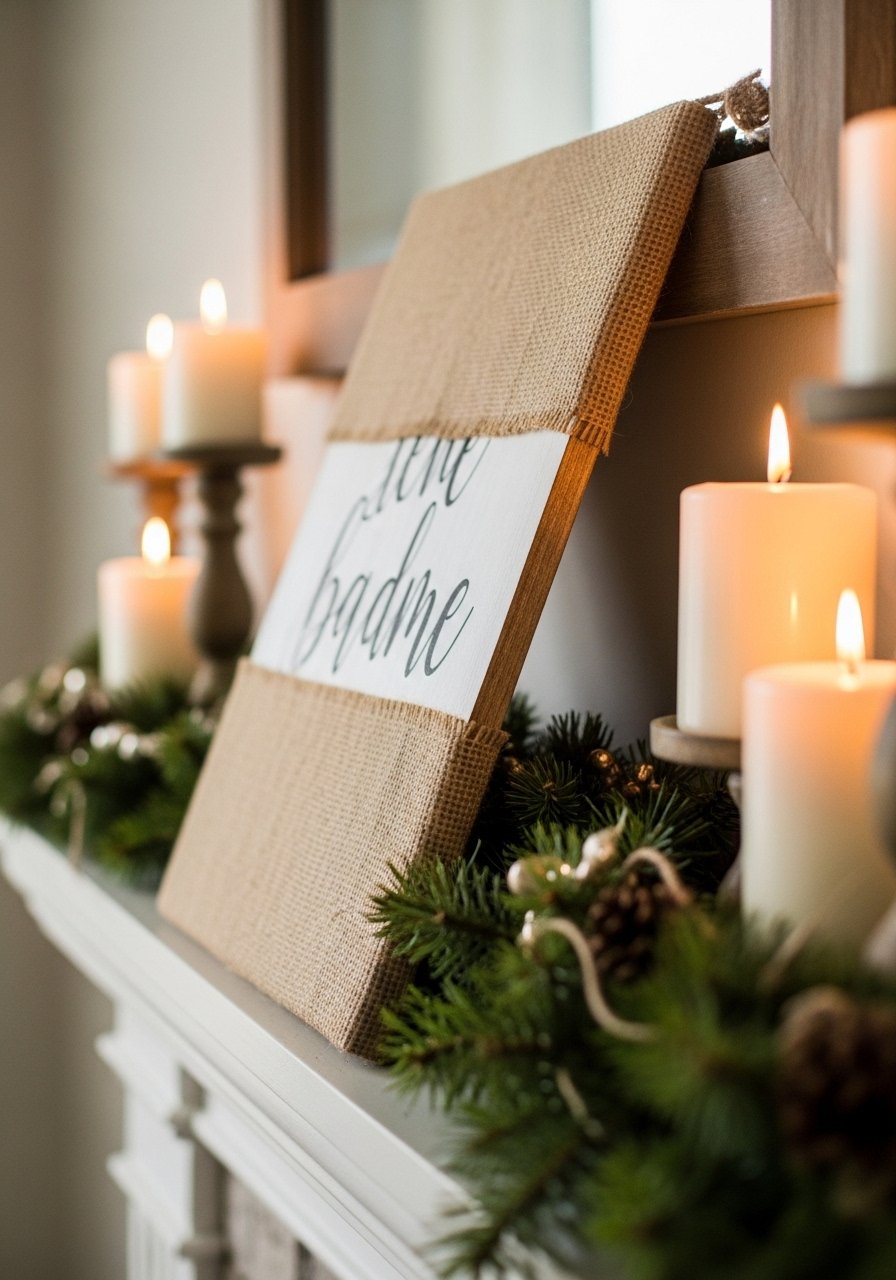 Burlap-Wrapped Farmhouse Plaque for Mantel (Farmhouse, Affordable)