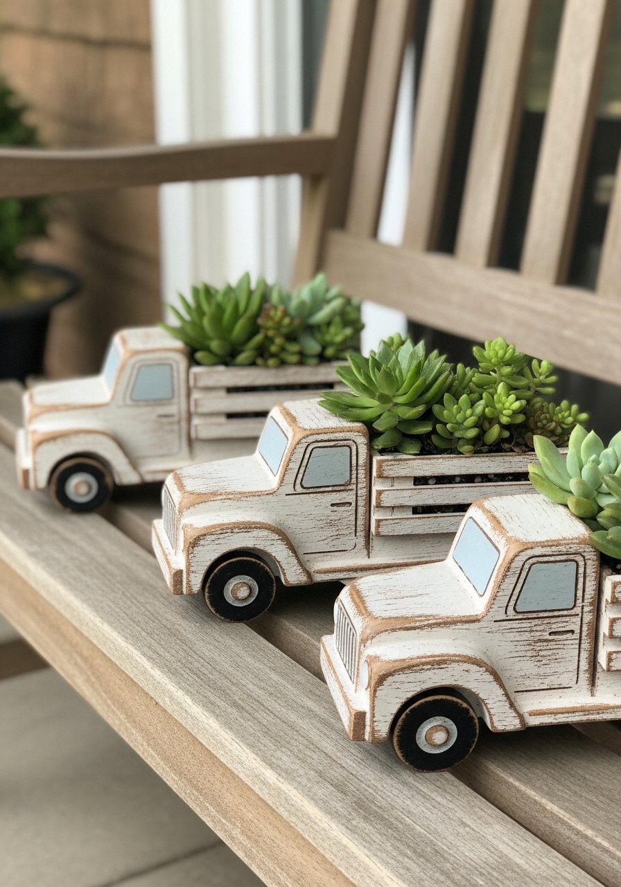 Heat-Gun Patina on Dollar Tree Wood Trucks for Planter Art (Farmhouse, Playful)