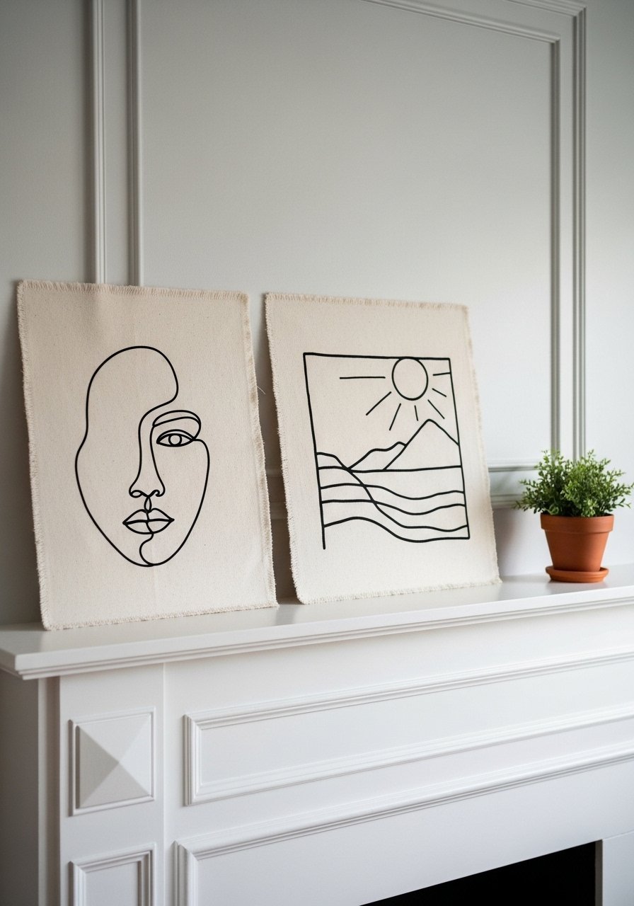 I painted minimal black line figures on small unstretched canvases and leaned them against the wall for a casual gallery look. Use a neutral primer and a steady hand — or print and transfer a design first. The gallery feel comes from scale and spacing, so pair two or three pieces in odd numbers. Avoid dense, busy drawings; the minimalist aesthetic needs breathing room. These pieces are perfect for boho living room ideas that want restraint and texture.