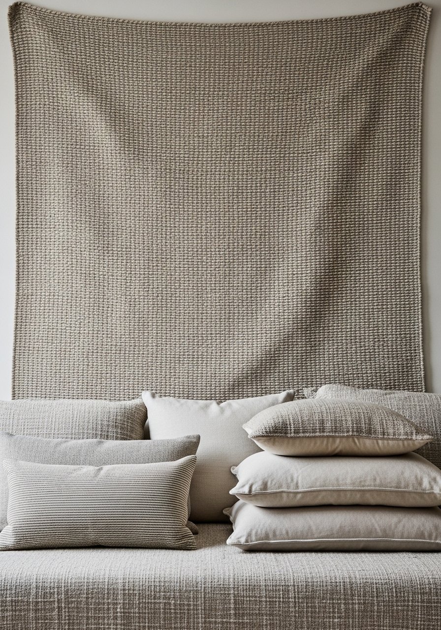 I used a large woven fabric as a tapestry to cover an entire wall and it instantly felt gallery-sized. Choose earthy tones and a subdued pattern for a peaceful backdrop. Hang with a simple wooden rod to keep the look clean. Avoid overly bright patterns that compete with your furniture. This approach is great for renters and creates a focal point without frames. It’s one of those pieces that gives scale and depth to a small room.