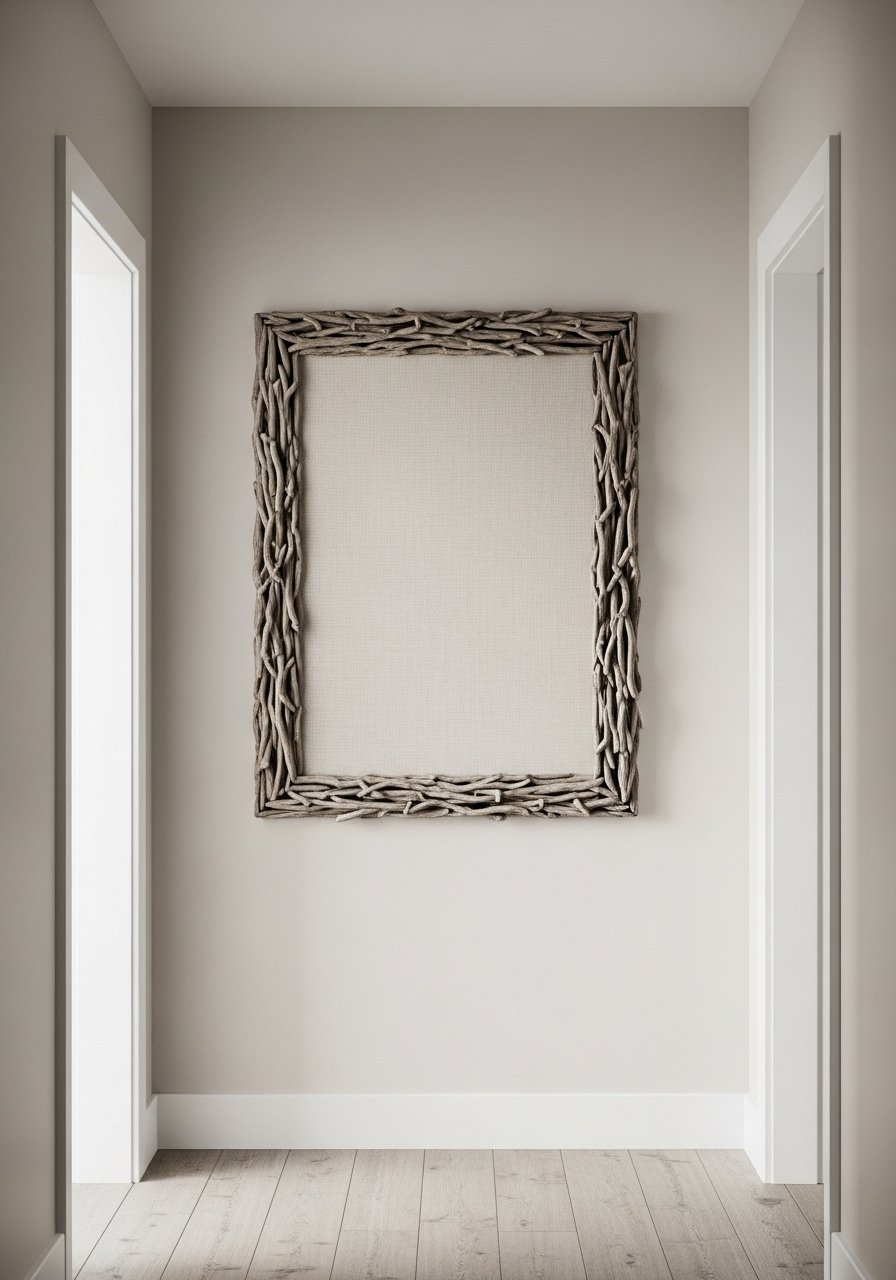 I stretched a linen-print over a thin frame and added a driftwood outer frame for a layered, tactile piece. The linen texture makes a bigger visual impact than paper at the same size. It’s ideal for coastal decor ideas because the driftwood edge echoes the sea. Avoid glossy finishes that kill the linen’s tactile quality. This piece proved that material choices—linen over paper—make even inexpensive prints look gallery-worthy.