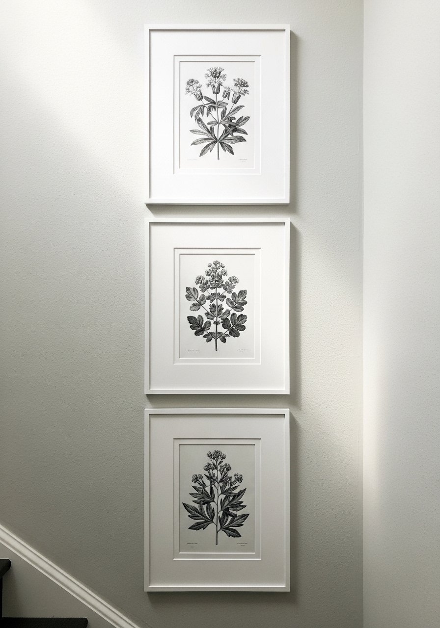 I printed high-contrast botanical silhouettes and mounted them on deep white mats for a chic, gallery-ready set. The depth of the mat makes the prints feel expensive. Keep the tones monochrome and frames identical for cohesion. A mistake is using thin mats that flatten the look—deep mats add architecture. This gives botanical drama without the upkeep of real plants and pairs well with small shelf decor and layered textures.
