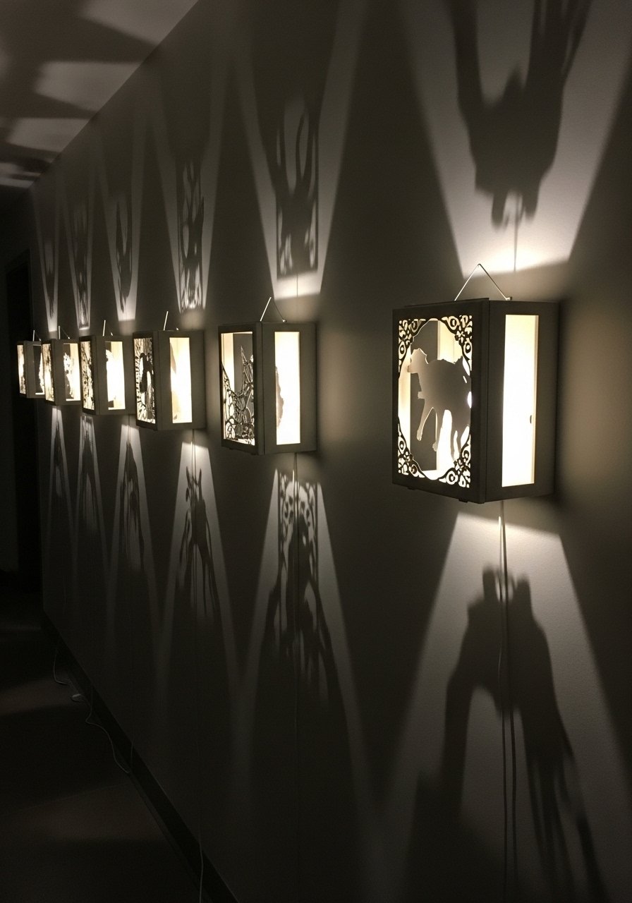 Shadow Play: Cut Paper Silhouettes in Backlit Frames (Contemporary, Dramatic)