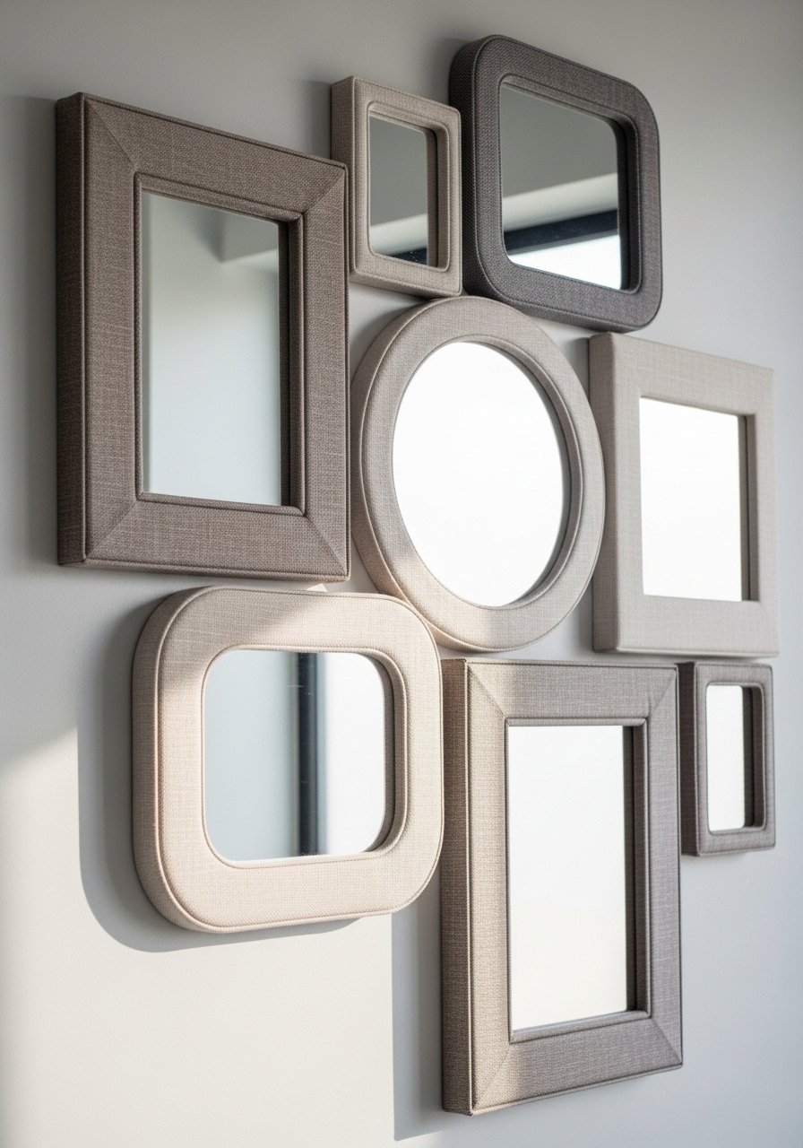 Layered Mirrors with Fabric Frames for Depth (Industrial Organic, Reflective)