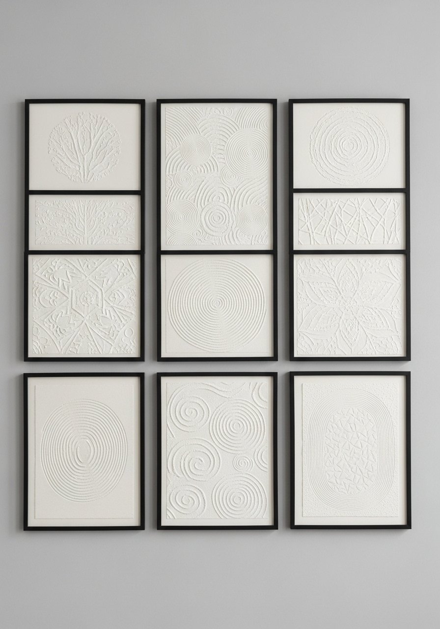I used embossing powder to give prints subtle raised textures and framed them simply. The tactile element reads high-end and photographs beautifully. Keep designs minimal to let the texture show. A mistake is heavy color — subtle monochrome works best. These are easy to rotate seasonally, giving you flexible gallery art that stays fresh.
