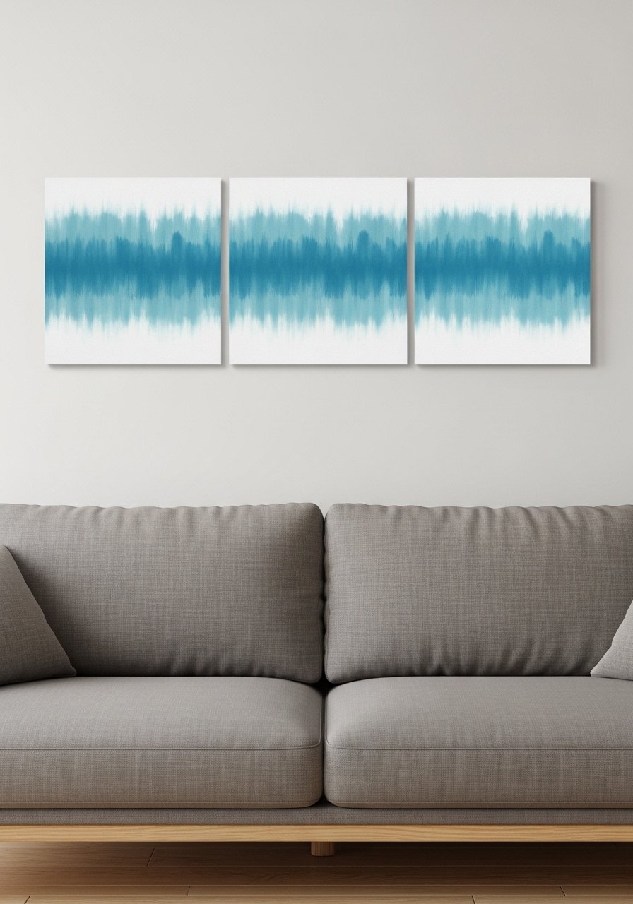 I made three dip-dyed canvases in graduated coastal blues and hung them as a series. The unity of tone makes them read like a single commissioned installation. Use linen-blend canvases for texture and keep the dye subtle. A common mistake is uneven spacing; measure consistently. This creates a calming focal point and works well with coastal decor ideas and driftwood frames.
