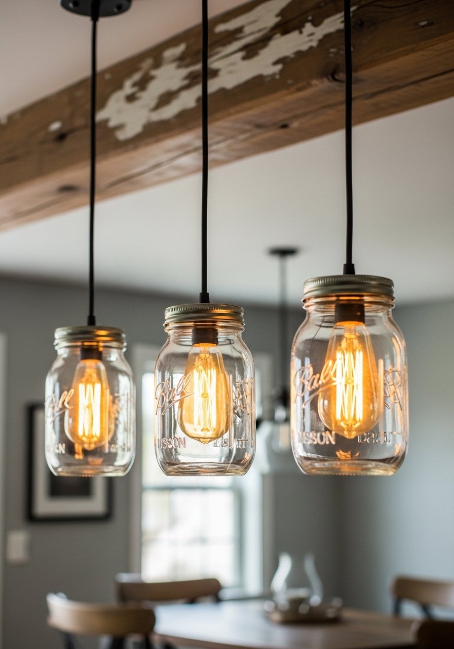 I swapped out a harsh flush mount for mason jar pendants and dinner suddenly felt softer. The jars add a simple vintage note without looking fussy. Amber bulbs make the whole kitchen glow.