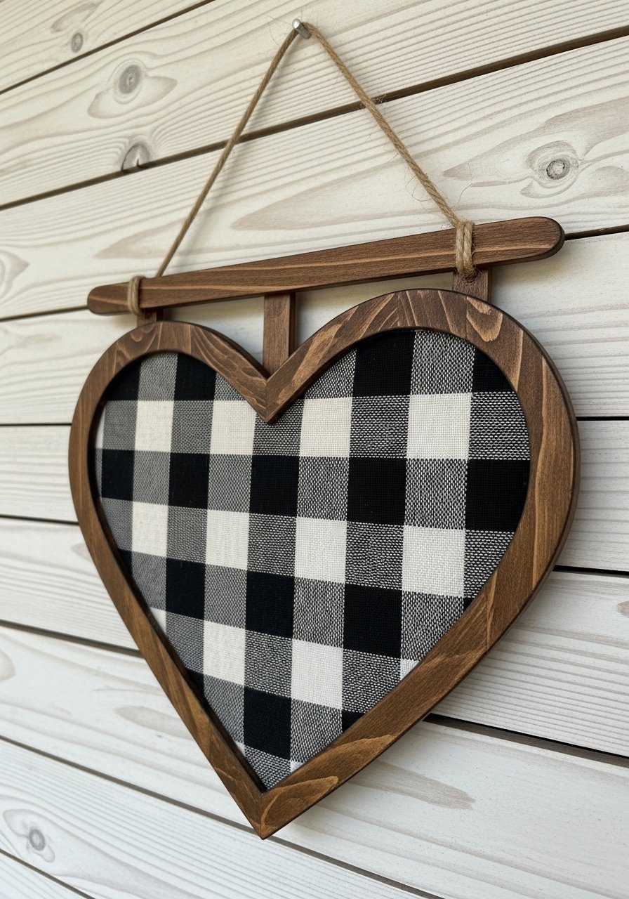 4. Buffalo Check Heart Wall for Year-Round Nostalgia