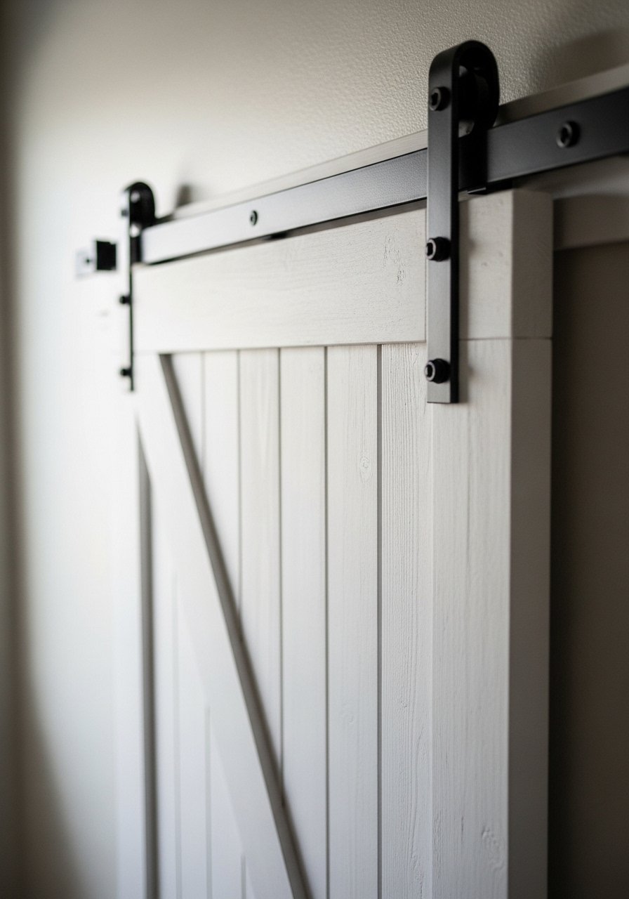 I hung a lightweight faux barn door on a rail that uses wall anchors instead of remodeling. It adds farmhouse flair without permanent changes — great for rentals.