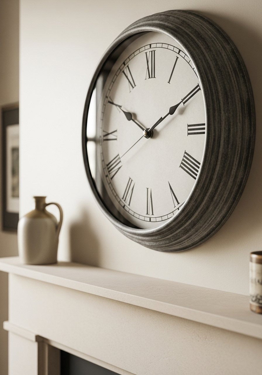 My first clock was too shiny. Aim for matte or aged finishes. Surround it with low objects so the clock stays the focal point.