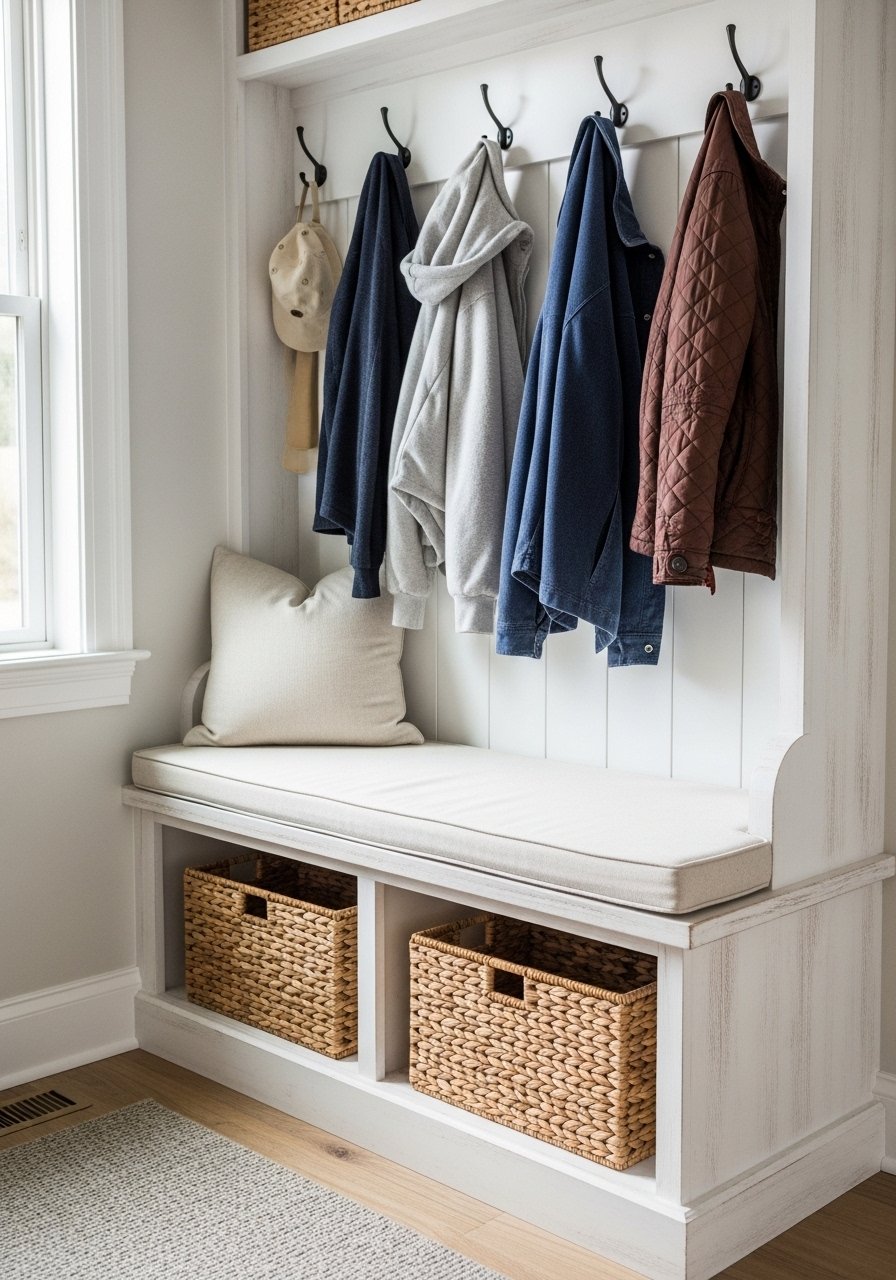 Years ago I bought a simple bench and later retrofitted baskets underneath. Storage suddenly became effortless. Aim for a bench seat height of 18 to 20 inches. Budget $80 to $200 depending on materials. A common error is picking a bench that is too narrow to sit on comfortably. I paired a whitewashed side table with a medium woven storage basket I found online to keep shoes out of sight.