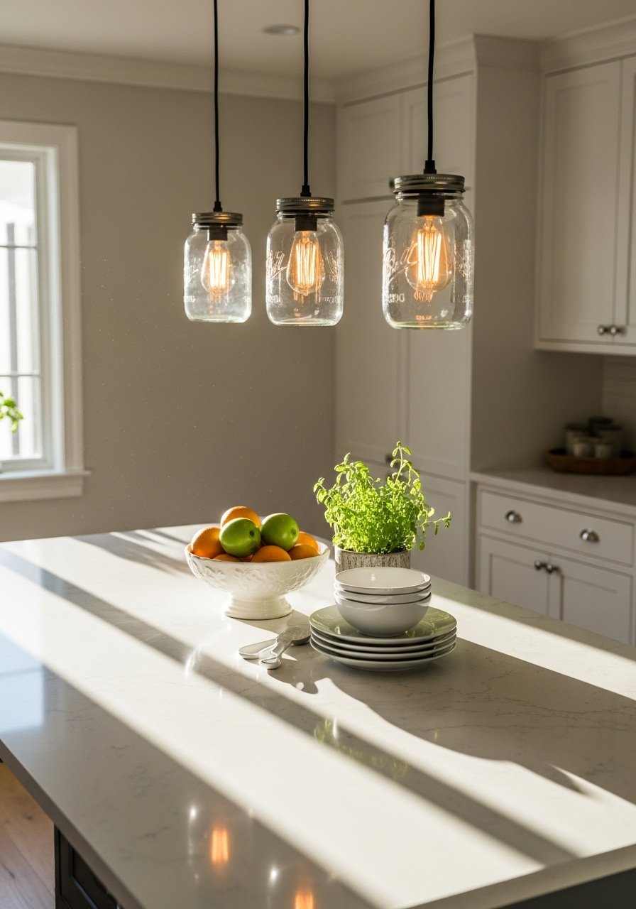 I swapped pendants and the island felt charming, not kitschy. Mason jar pendants work best over narrow islands. Use warm LED Edison bulbs for that amber glow. Avoid tiny fixtures that lack enough light for prep work. I bought a set of three glass jar pendants and installed dimmers so they are task ready or mood ready.