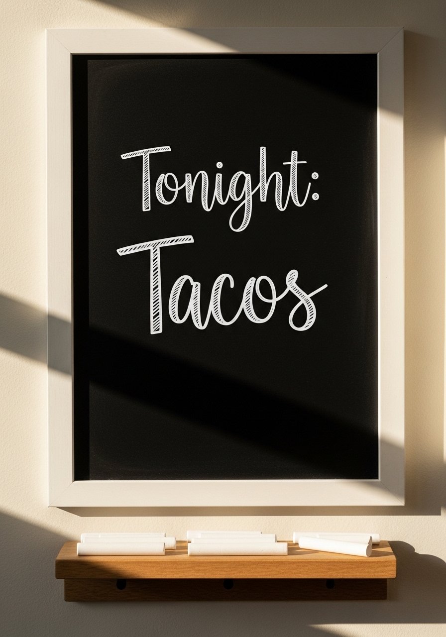 I painted a small panel with chalkboard paint and it became a family planner. A framed chalkboard reading 'Tonight: Tacos' feels both useful and charming. Write in one bold line and one smaller note underneath. Avoid tiny unreadable handwriting because family members will ignore it. Use chalk markers for cleaner lines and a quick wipe.
