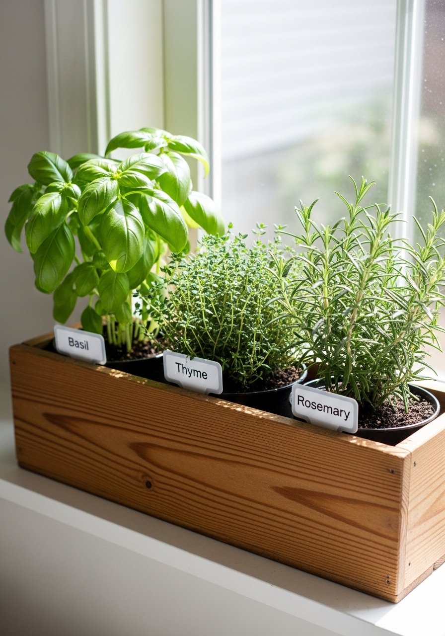 I built a shallow planter for my kitchen window and now I cook with fresh herbs weekly. Plant three varieties in equal spacing to follow the odd-number rule. In small apartments use compact varieties and a shallow trough about 4 to 6 inches deep. Overwatering kills herbs fast, so choose a planter with drainage. I found a small wooden trough and labeled jars that read 'Basil' and 'Thyme' for clarity.