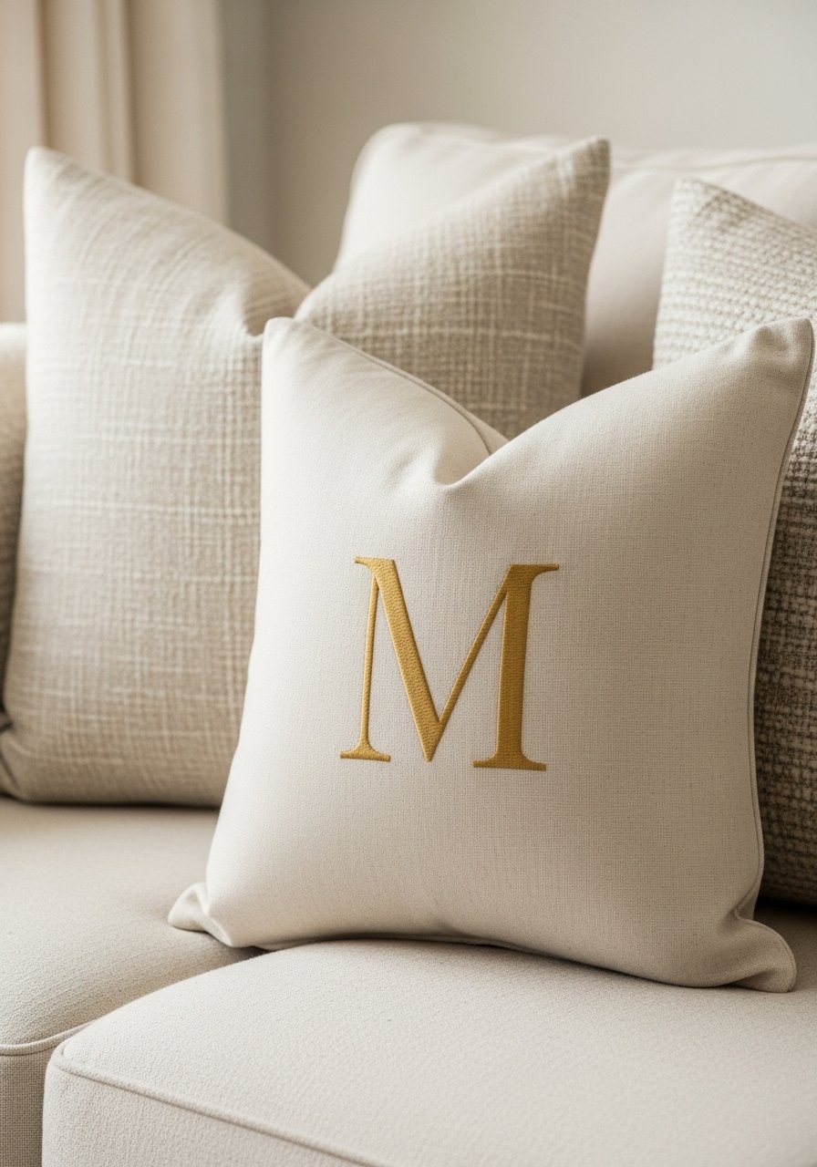 I found a pillow with the letter 'M' and suddenly the sofa felt curated. Monogrammed or hand-lettered pillows work as the 10 percent accent in a 60-30-10 scheme. Use 20 to 22-inch covers as anchors. Avoid loud fonts that compete with other patterns. I buy fresh covers and swap them seasonally to keep the look fresh.