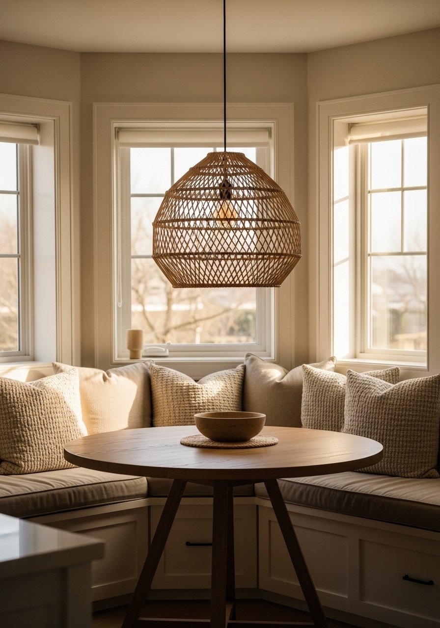 Rattan Pendant Over Breakfast Nook For Soft Natural Light