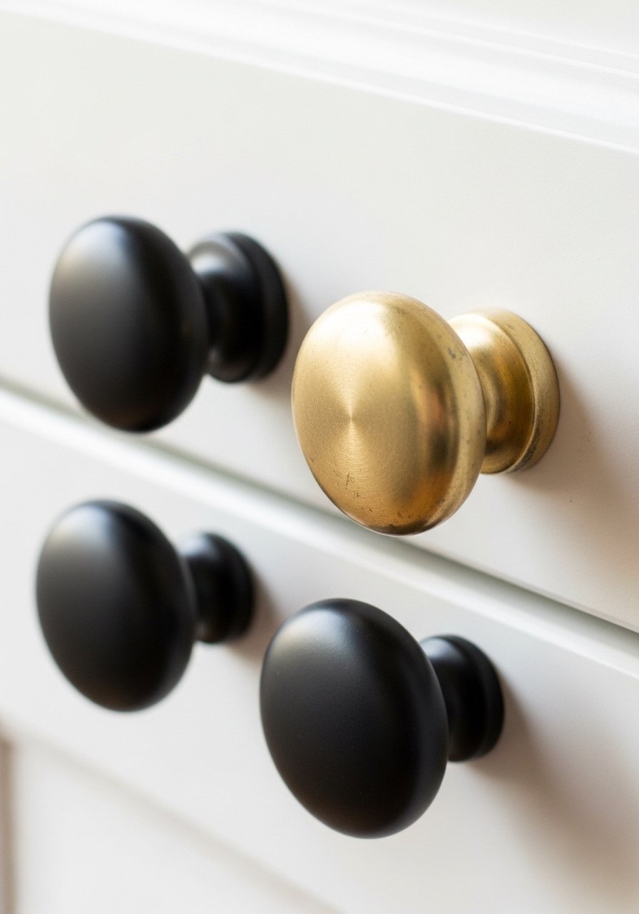 I painted my old brass knobs matte black and the cabinets read new. If you want a subtle update, swap or paint hardware. Choose a consistent pull size, about 3 to 4 inches, so islands and base cabinets match. The obvious mistake is mixing finishes without a unifying accent. Pick one metal family and repeat it three times across the room.
