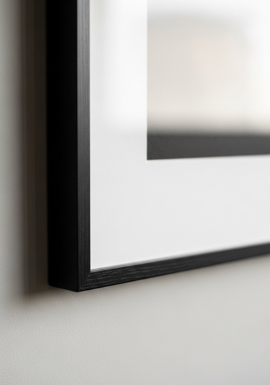 I used slim black frames with a 2.5-inch white mat to make a small print feel gallery-sized. The result is crisp and quiet; the art reads bigger and more intentional. I paired these slim black frames with fresh mats. Avoid tiny mats or no mat at all — that makes art feel cramped. Use odd-number groupings and keep spacing at about 2–3 inches for balanced negative space.