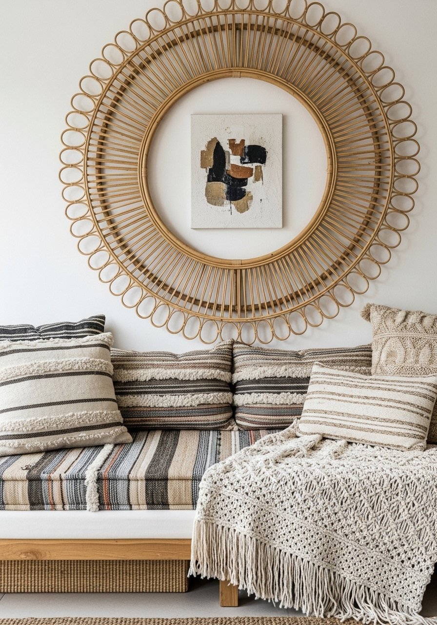 Rattan Round Frame for Boho Statement — Boho Living Area