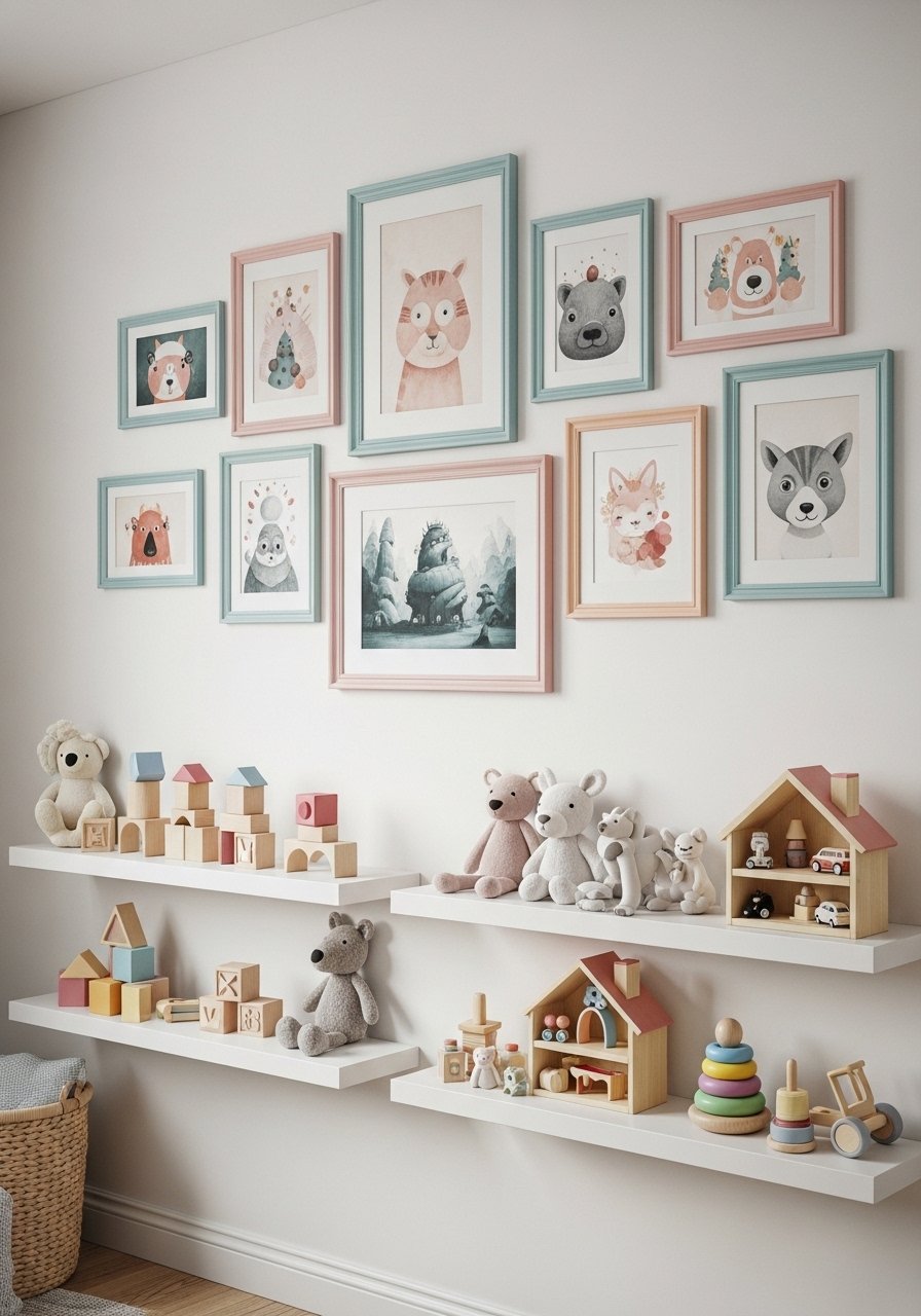 Painted Pastel Frames for Playful Kids' Gallery — Playroom