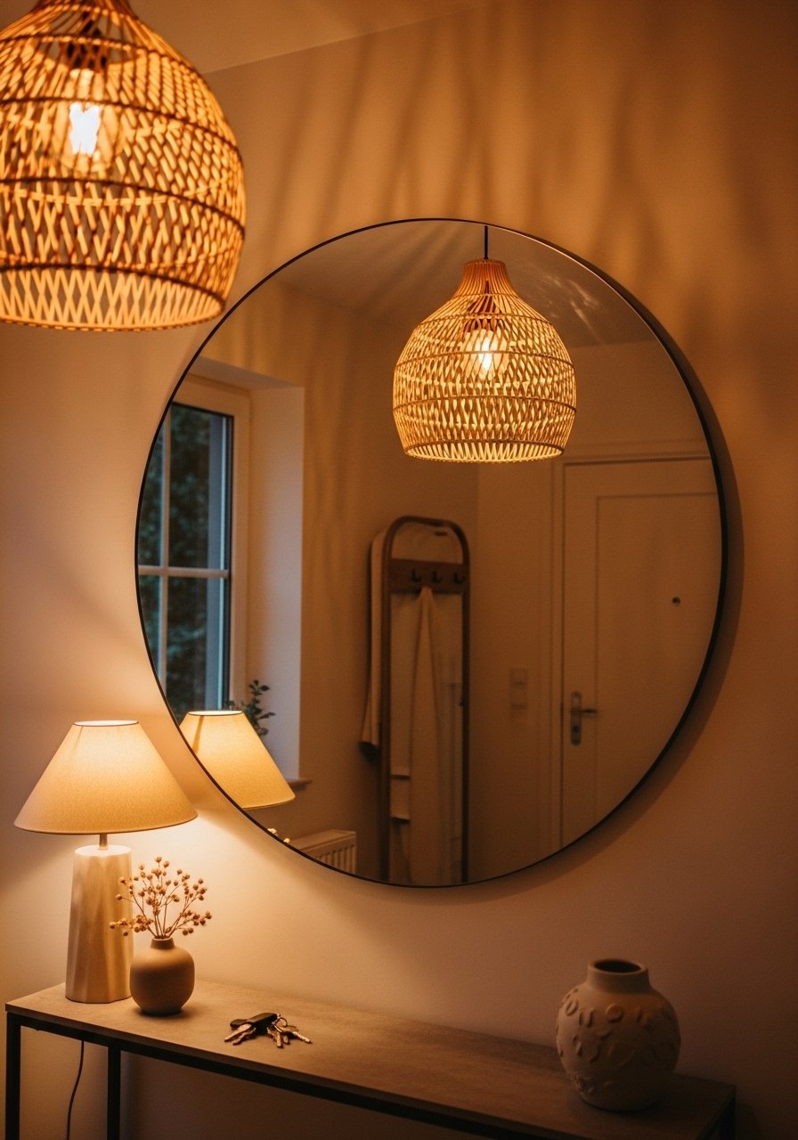 I bought a 36-inch round mirror and propped it near my entryway. It doubled perceived space and bounced light into a previously dark corner. Budget around $80 to $150. Avoid thin plastic frames. Choose a solid wood or metal rim. Large round mirrors 36-inch read pricier than small clustered mirrors. In photos the reflection adds depth. In real life you must style the reflected area too, or it looks like wasted space.