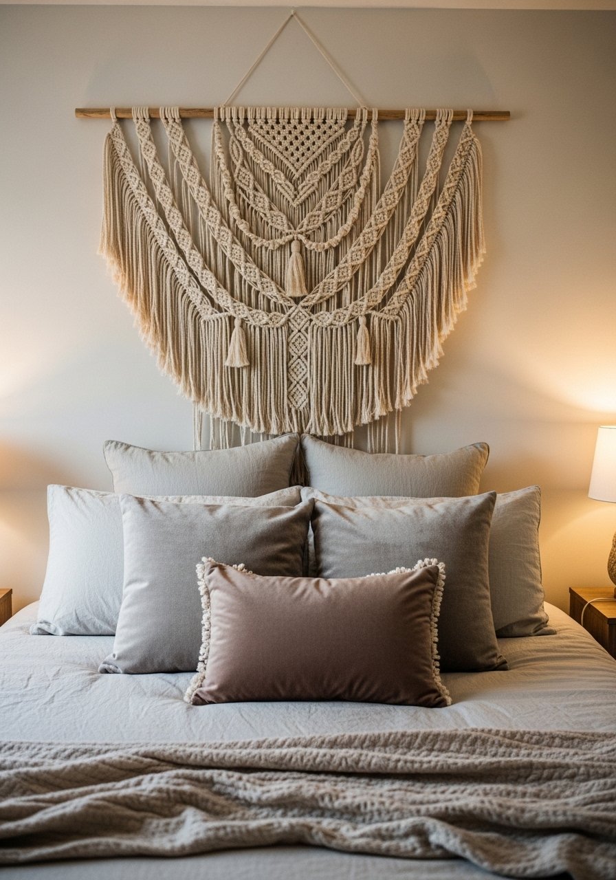 One macrame piece made my headboard area feel intentional. I spent about $40 on materials and the piece looks like a boutique find. Common mistake, choosing tiny hangings that disappear above a queen bed. Aim for 60-70 percent of the bed width. I paired mine with linen pillow covers. Photos make woven details pop. In person they add real texture and quiet warmth.