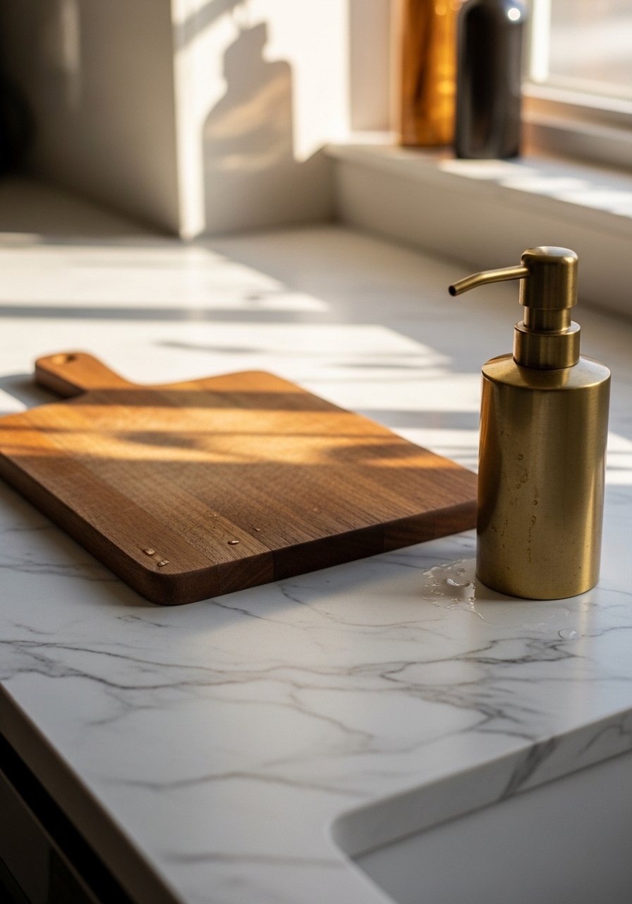 I used marble-effect contact paper on an old laminate counter. It reads high-end from a distance and took less than an afternoon. Budget $20 to $60. Avoid visible seams by matching vein direction and applying heat to smooth bubbles. Try marble contact paper and a plastic scraper. Up close it is not real stone. From the main living area it looks very convincing.