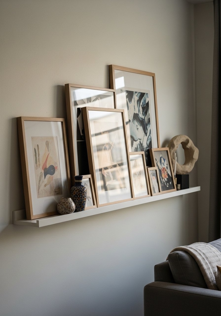 I installed a 4-inch ledge and began rotating art by season. It looks designer without heavy commitment. Budget $25 to $80. Avoid tiny frames that look fussy. Use one large piece and several small pieces layered in front. Picture ledges 36-inch pair well with fresh prints. In photos it reads intentional. In day-to-day life you can swap holiday art in minutes.