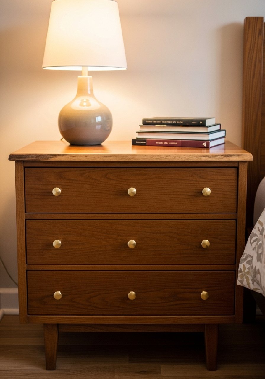 I sanded and stained a $40 thrifted dresser and added brass knobs. It now reads like a custom piece. Budget varies $40 to $150. Avoid heavy paint that hides good lines. Preserve or refinish wood where possible. I like brass knobs set of 10 and a medium-grit sanding block. In photos new finishes look flawless. In reality you will see character. Embrace it.