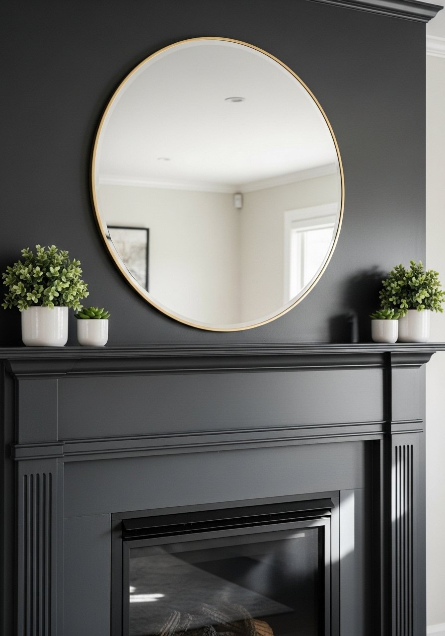 Painting a fireplace mantels changes the whole room. I used deep charcoal paint for contrast and added a large mirror above. Cost under $60. Avoid glossy paint on a mantel that gets touched. Use satin or eggshell. I used charcoal paint sample 8oz and a good angled brush. Photos make the mantel crisp. In person it anchors seating arrangements.