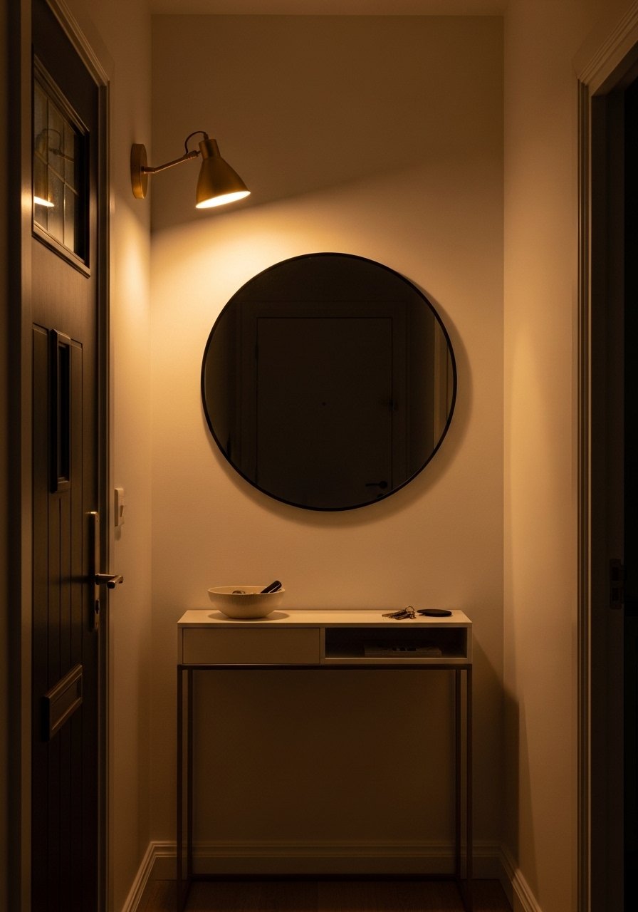 Most entryways get a single overhead and feel flat. Adding a brass sconce makes the wall read like it has purpose. It suits modern and transitional entryways. Budget runs $40 to $150. I like sconces that have a 6 to 8 inch arm to clear a mirror. Common mistake is choosing finishes that clash with door hardware. If you have warm brass knobs pick a warm brass sconce. I linked this brass wall sconce that matched my door handle.