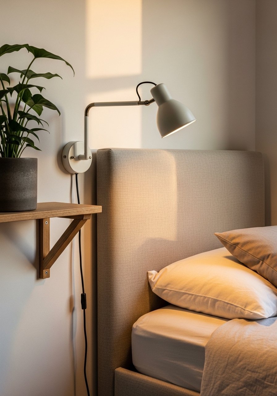 I learned that hardwiring is not required to get sconces. Plug-in swing arm sconces add task light without an electrician. They fit tiny bedrooms and rental apartments. Price range is $30 to $70. Photos make them look delicate. In person choose one with a 12 to 16 inch arm for good reach. A common error is mounting too high. Aim for the bulb at eye level when seated. I recommend this plug-in swing arm sconce.