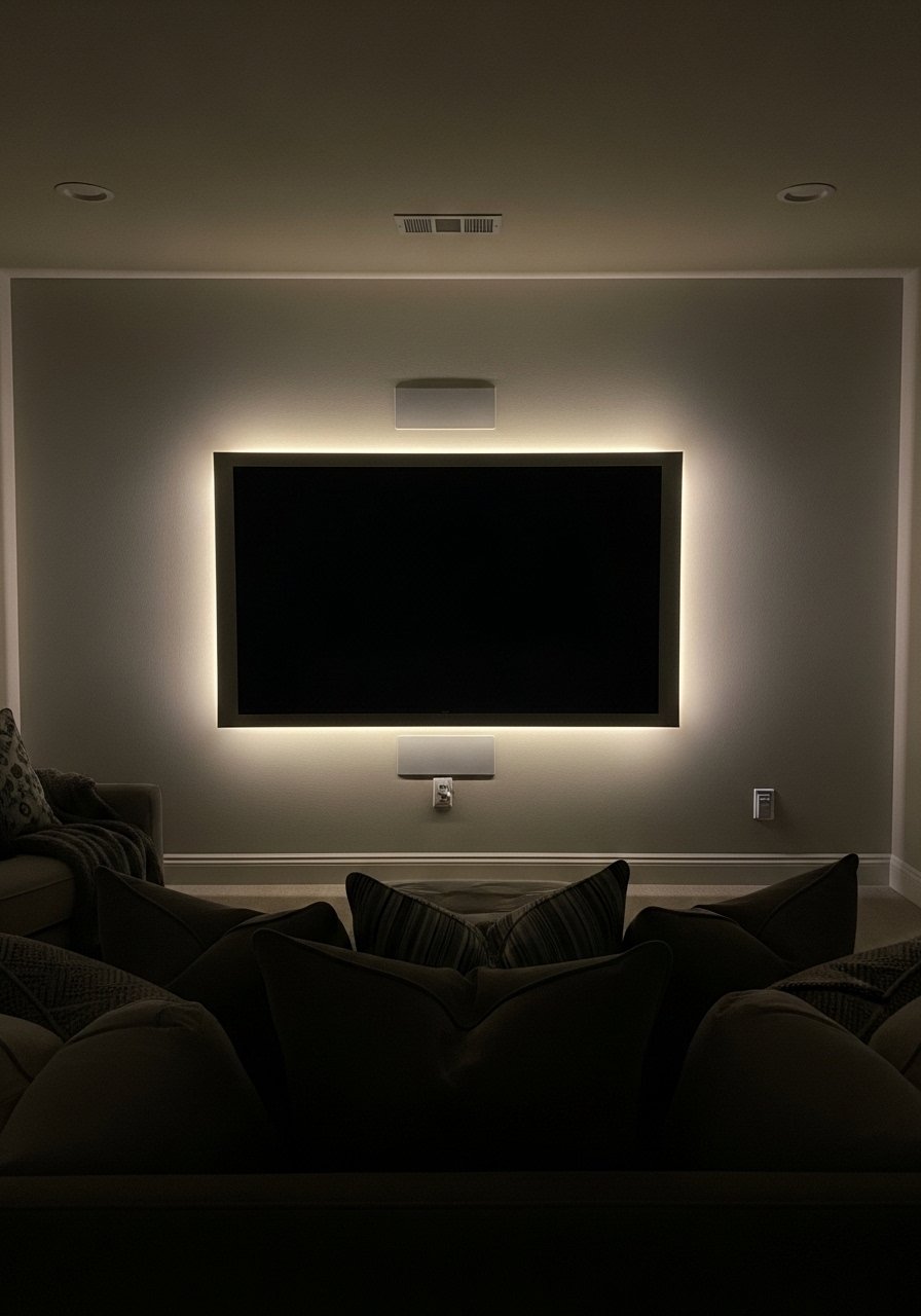 I added LED strip lighting behind the TV and movie nights got less fatiguing. The backlight reduces contrast and makes the screen easier on the eyes. It fits media rooms and gaming setups. Budget is $15 to $50. Photos show obvious color bands. In person pick a high CRI and smooth white range. Avoid ultra-bright colors that distract during movies. I recommend this warm-white LED strip with an adhesive rated for textured walls.