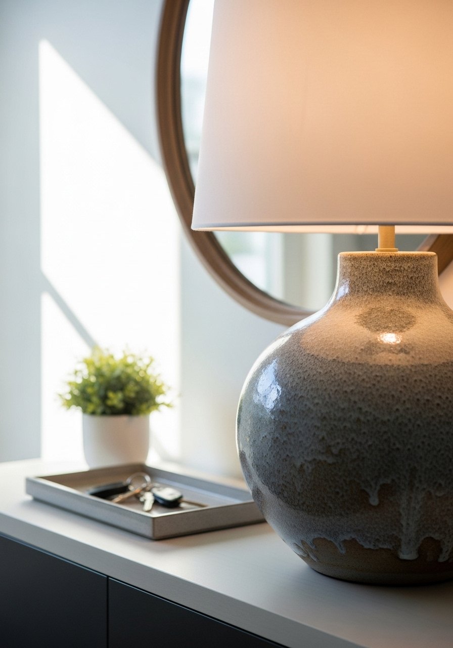 I swapped a generic lamp for a ceramic piece with texture and the entry felt curated. It suits minimalist and contemporary spaces. Budget is $40 to $150 for a unique glaze. In photos the texture jumps. In real life pick a lamp with a stable base so it is not top-heavy. Avoid colors that clash with your console. I chose a matte ceramic table lamp in warm sand to pair with wood tones.