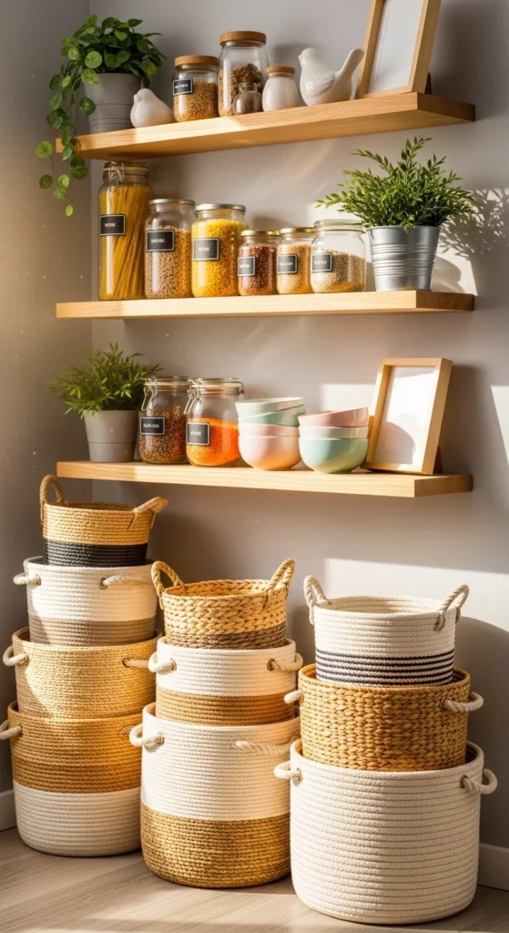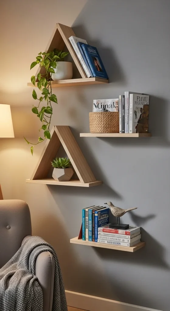 Corners are often wasted. Installing floating shelves turns them into storage gold. Use small baskets for remotes, keys, or craft supplies. Even a single shelf can hold multiple items without crowding the room. Pick lightweight wood or reclaimed boards for a budget-friendly option. Paint them to match your wall for a seamless look. For tiny apartments, stacking two or three shelves vertically maximizes space without taking floor area. This simple hack keeps your essentials accessible while decluttering surfaces.