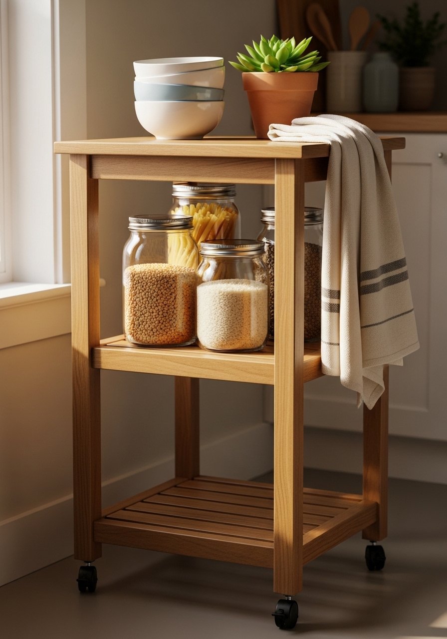Rolling Pantry Cart, Minimalist Kitchen Nook