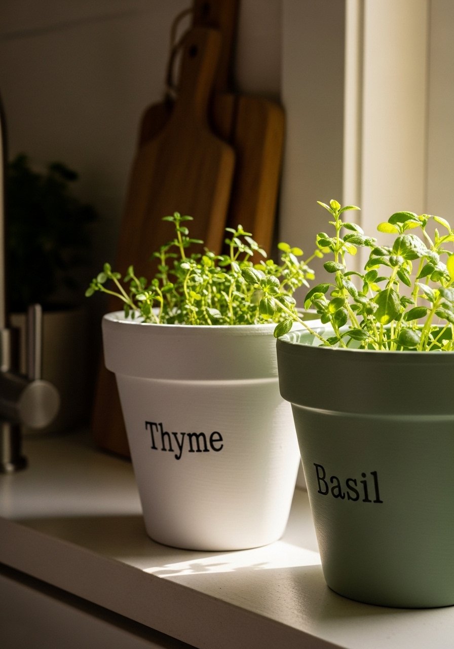 Painted Terra Cotta Planters For Minimalist Kitchen
