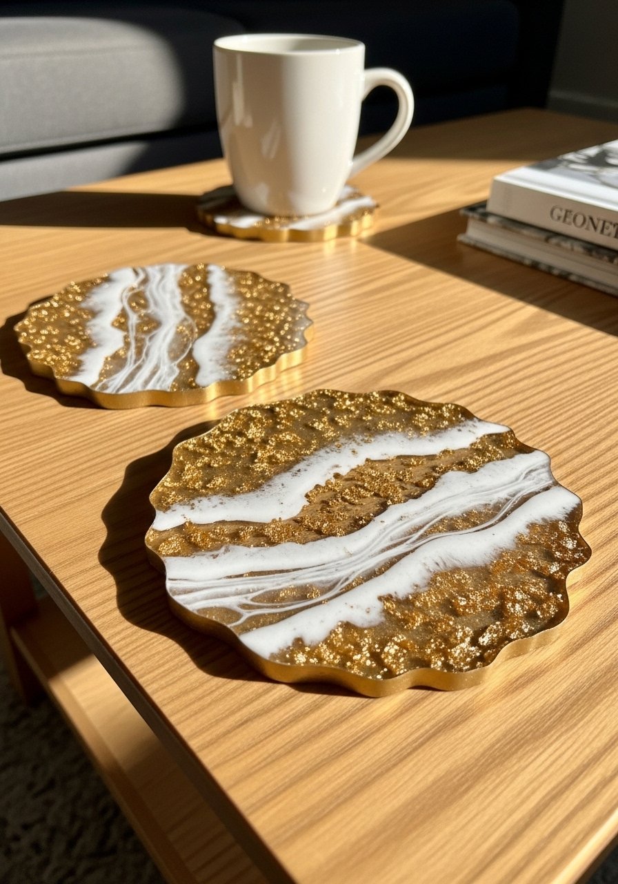 I used a resin kit with pearl pigments to mimic marble. Coasters photograph like small art pieces. Use silicone molds sized 4 inches across. A common mistake is pouring too thin, which cups and chips. Budget $20-40 for supplies. They pair with raw wood trays and look current with mixed metals. Try resin art kit with molds for a simple start.