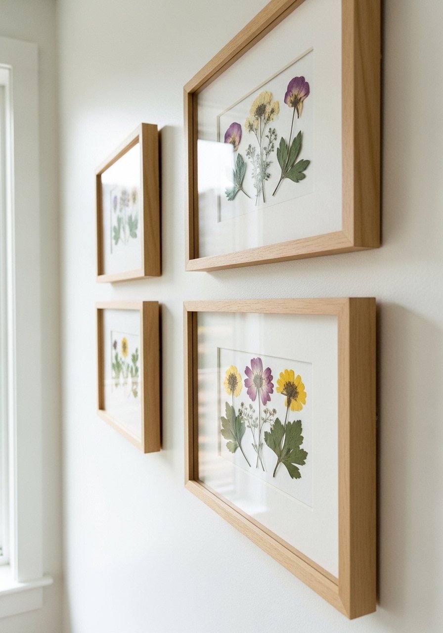 I pressed wildflowers from a summer walk and framed them in thrifted frames with new white mats. It reads refined in photos and feels personal in real life. Budget under $30 for multiple frames. Avoid thick frames that overwhelm delicate blooms. For a cohesive gallery, use three frames grouped, odd numbers read better. Pair with warm wood tones from IKEA or Target for balance.