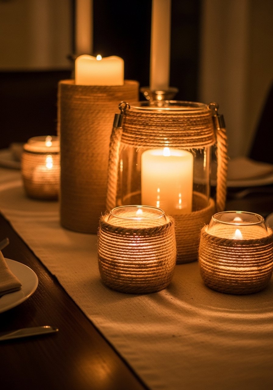 Rope Wrapped Candle Holders For Rustic Dining Table