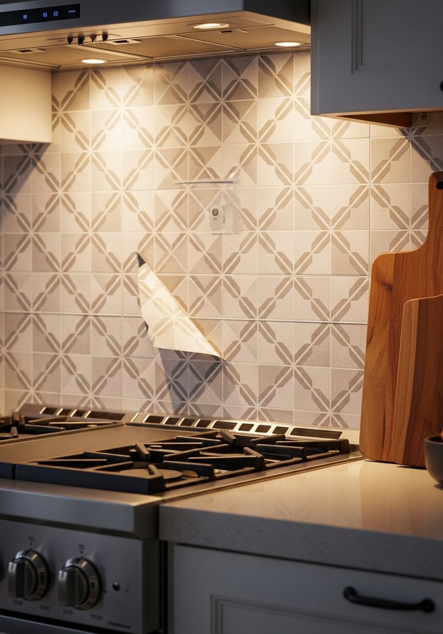 My rental kitchen needed personality but I could not install real tile. Peel-and-stick tile decals gave me the look for under $30. In photos they read like real tile. Up close, grout texture is flat. Use high-contrast decals sparingly, one wall only. For small kitchens, stick to a 2-foot band behind the stove. I bought peel and stick backsplash tiles geometric neutral.