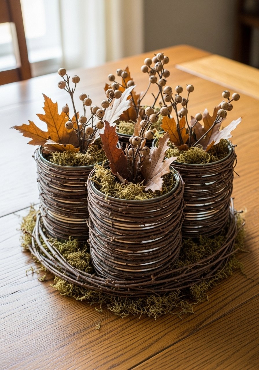 Twig-Wrapped Tin Cans Centerpiece for Rustic Farmhouse Tables
