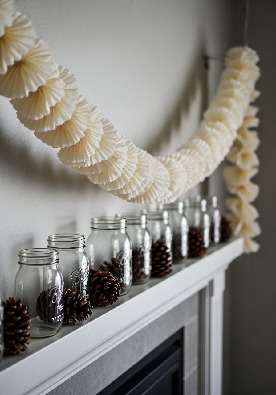 I layered folded coffee filters onto twine to create a puff-y garland that I draped over the mantel. It’s airy, budget-friendly, and works year-round. I use this natural twine so the ties disappear into the look. Mistake: spacing the filters too far apart—keep them close for that soft volume. This upcycled winter decor idea is a great renter-friendly, freestanding accent that keeps things cozy after the holidays.