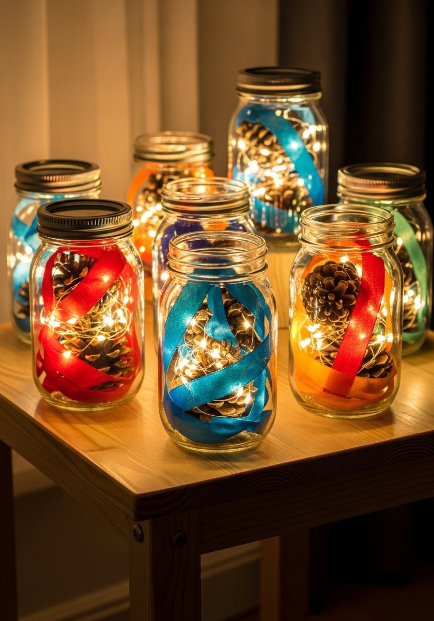Mason Jar Winter Decor with Scraps for Cozy Corners