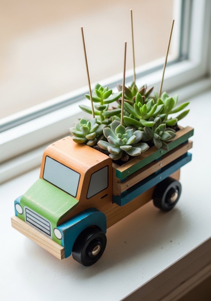I picked up a Dollar Tree wood truck and removed the toy bed with a heat gun to fit a small pot. It now holds a succulent and looks like a bespoke find. I used these small succulents and a tiny drill to drain. Common mistake: skipping drainage—add a pebble layer so roots don’t rot. This is a great budget home decor idea that reads deliberately playful, not cheap.